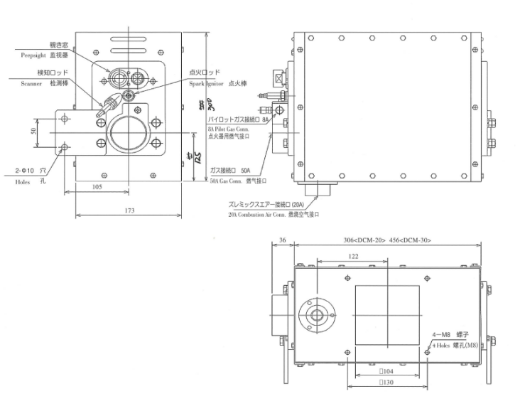 燃烧器和管道的间距以及燃烧器之间的间距必须保持在100mm以上。